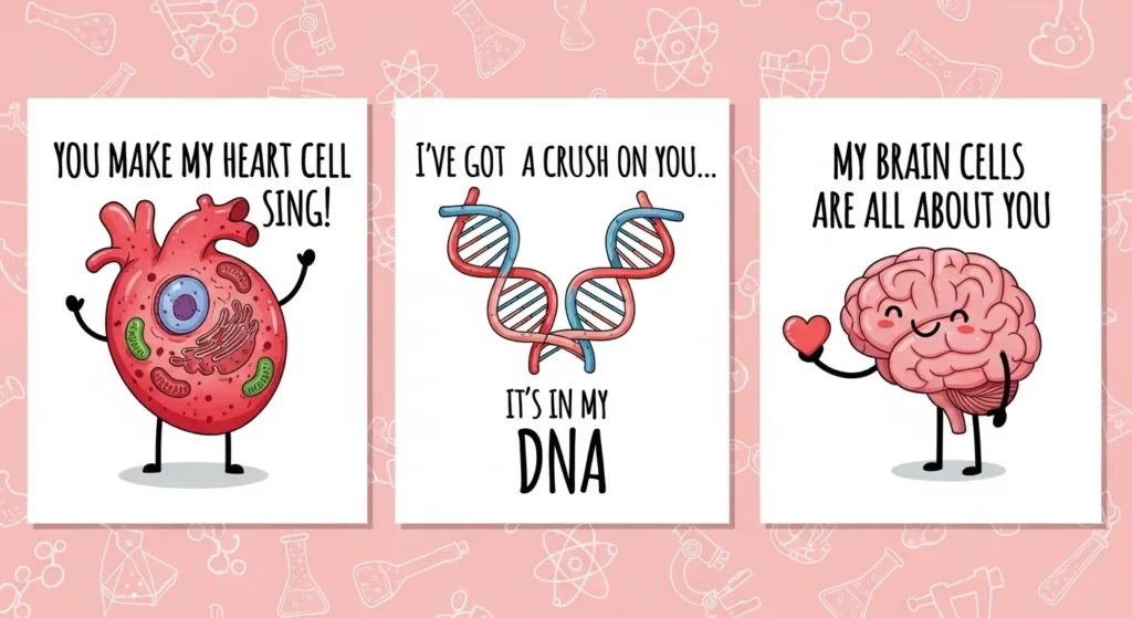 They add a unique twist that’s perfect for students, teachers, researchers, or anyone who enjoys nerdy humor. If you’re comparing love to DNA bonds, cell division, or natural selection, these puns turn complex biology concepts into sweet expressions of affection.